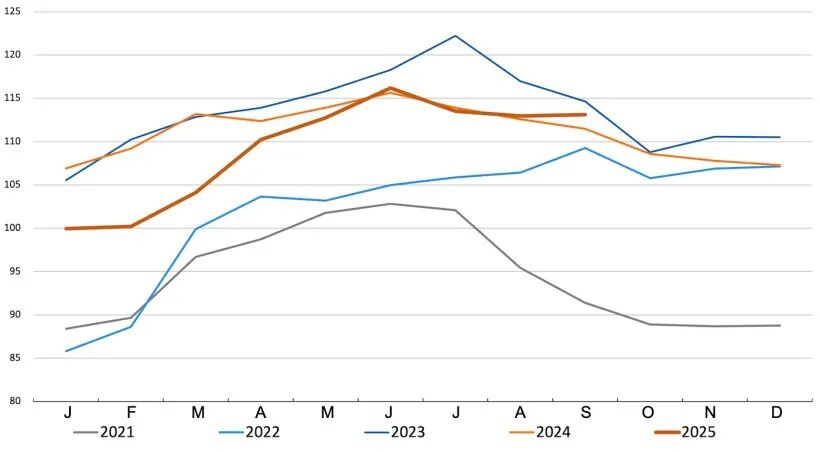 Beef prices climbed to unprecedented levels, primarily supported by strong demand in the United States, where limited domestic supplies and favorable price differentials continue to stimulate imports, particularly from Australia, where prices have risen. Brazilian beef prices rose in tandem with strong global demand, offsetting the impact of reduced export channels to the United States due to increased US tariffs.